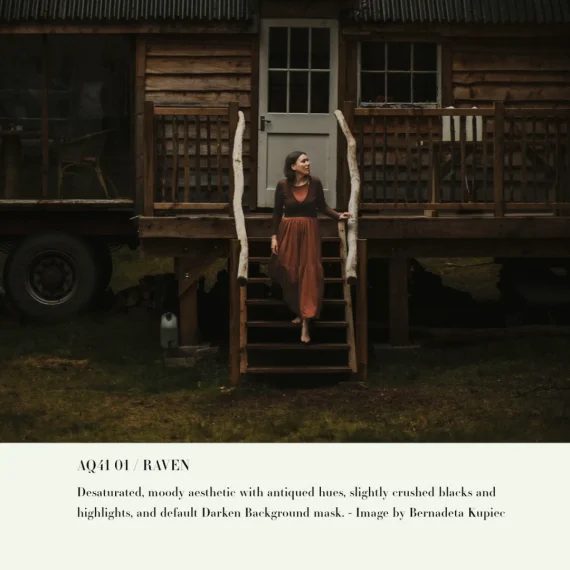 Inspired by the mysterious beauty of twilight, these presets transform your images into captivating, cinematic pieces. Raven brings out the haunting contrast between light and dark, while enhancing subtle details with a touch of desaturation and warm undertones. Perfect for photographers looking to create an enigmatic, brooding aesthetic with a hint of mystique.