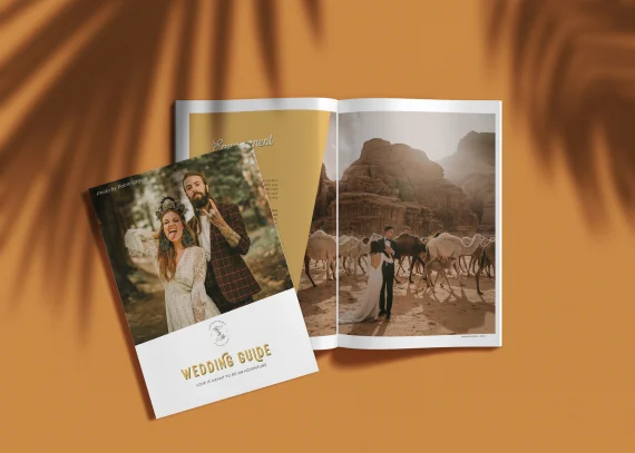 The customizable wedding guide is a 58 page template created by wedding photographers for wedding photographers. It’s for every photographer that wants to support their clients throughout the wedding planning process and share tips & tricks on how to get the most epic wedding photos of their day.